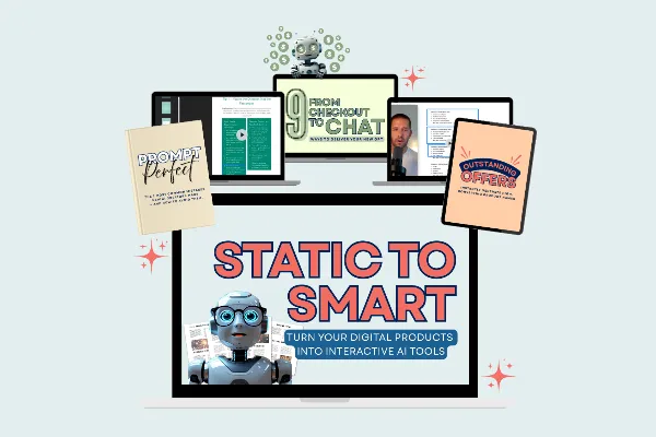 Static To Smart uses AI to take your existing knowledge and transform them into products that you can sell for $47 - $497 in minutes.
